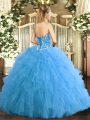 Home >  Quinceanera Dresses >  Puffy Quinceanera Dresses > Exquisite Orange Tulle Lace Up Sweetheart Sleeveless Floor Length Quinceanera Dress Beading and Ruffles