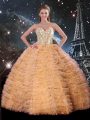 Exquisite Orange Vestidos de Quinceanera Military Ball and Sweet 16 and Quinceanera with Beading and Ruffled Layers Sweetheart Sleeveless Lace Up