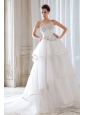 Exquisite Princess Beading and Appliques Wedding Dress Strapless Court Train Tulle