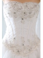 Home >  Wedding Dresses >  Popular Wedding Dresses > Exquisite Princess Beading and Appliques Wedding Dress Strapless Court Train Tulle
