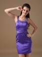 This purple sassy prom dress features column straps neckline with shining beading accented in the straps and waist. This mini-length dress is slim-line and contours your curve perfectly. The back of this charming dress has a zipper up closure.