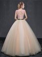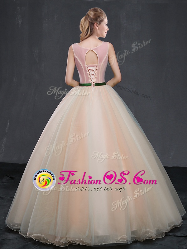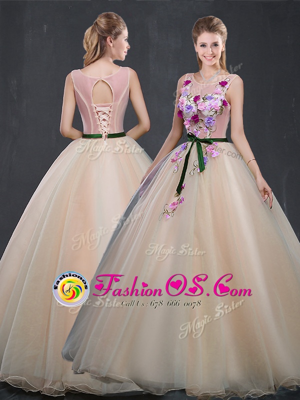 Exquisite Scoop Champagne Lace Up Quinceanera Dress Appliques Sleeveless Floor Length