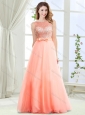 Home >  Prom Dresses >  Modest Prom Dresses > Exquisite See Through Bateau Modest Prom Dress with Beading and Bowknot