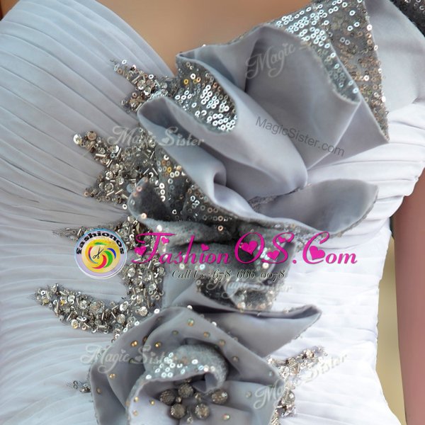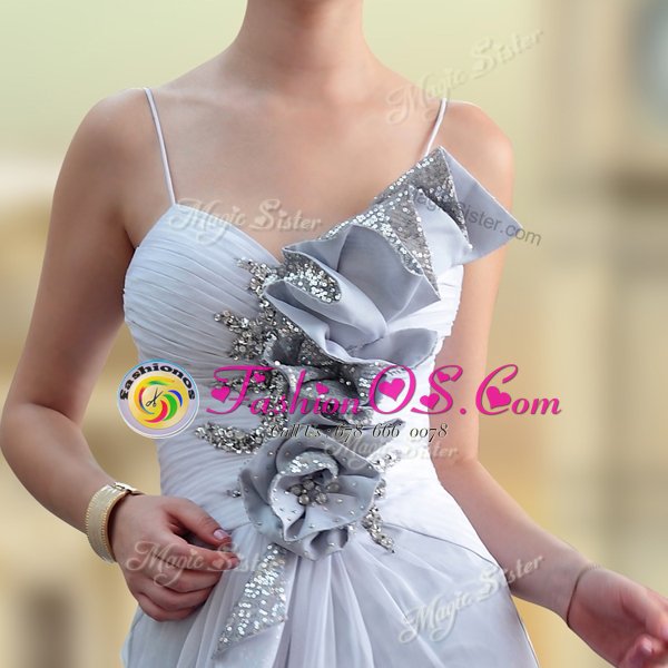 Home >  Prom Dresses >  Prom Dresses On Sale > Exquisite Silver Zipper Evening Dress Beading and Ruching Sleeveless Floor Length