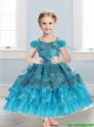 Exquisite Spaghetti Straps Cap Sleeves Little Girl Pageant Dress with Lace and Ruffled Layers