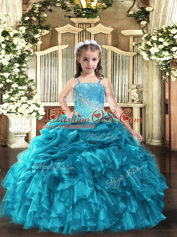 Home >  Special Occasion Dresses >  Pretty Little Girl Pageant Dresses > Exquisite Teal Sleeveless Organza Lace Up Little Girl Pageant Gowns for Sweet 16 and Quinceanera and Wedding Party