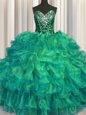 Exquisite Turquoise Ball Gowns Beading and Ruffles Quinceanera Gown Lace Up Organza Sleeveless Floor Length