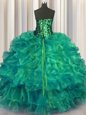 Home >  Quinceanera Dresses >  Sweet 16 Dresses > Exquisite Turquoise Ball Gowns Beading and Ruffles Quinceanera Gown Lace Up Organza Sleeveless Floor Length