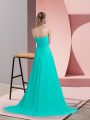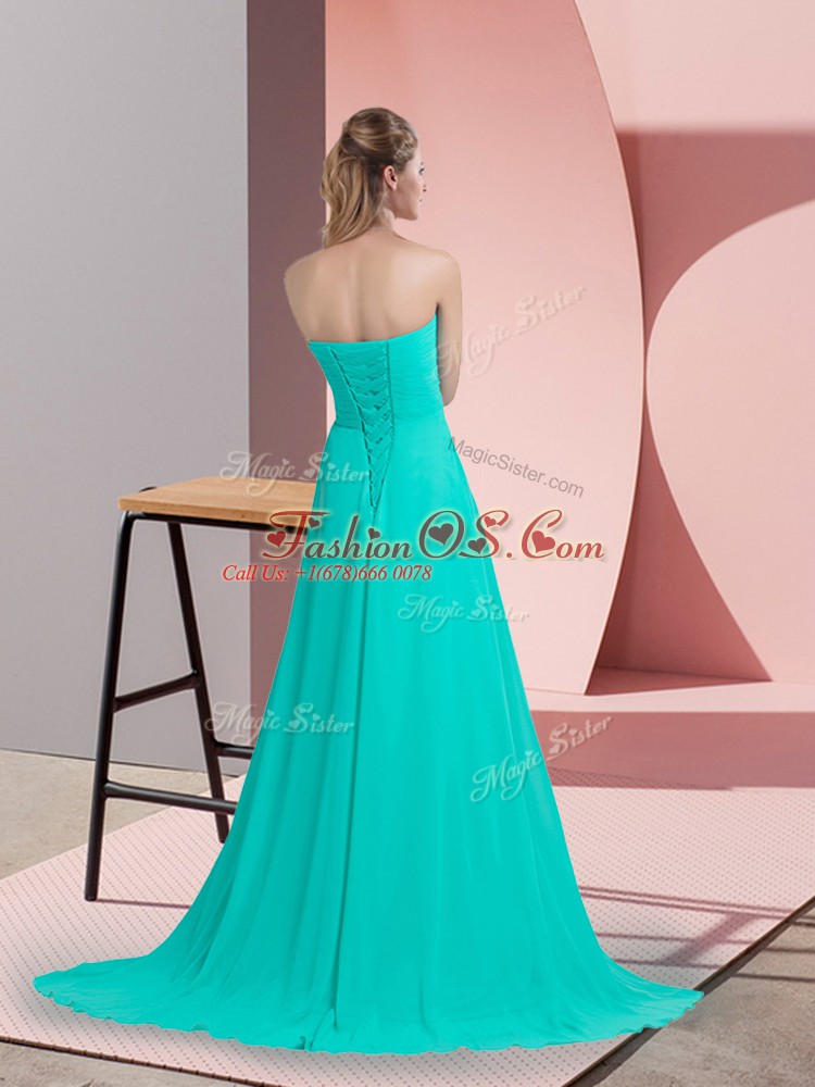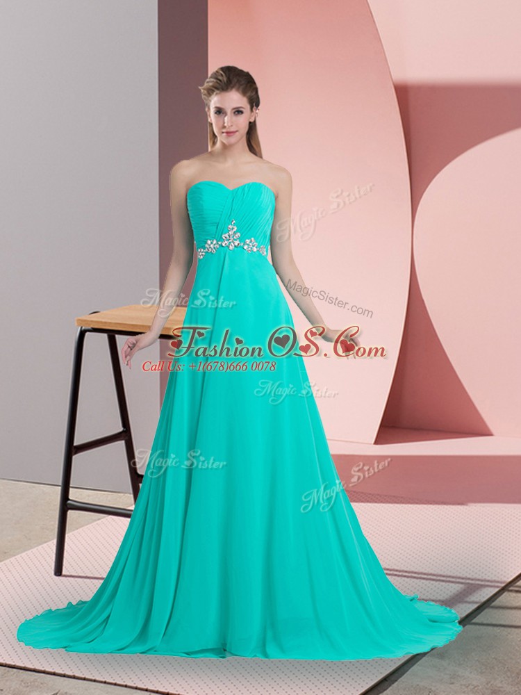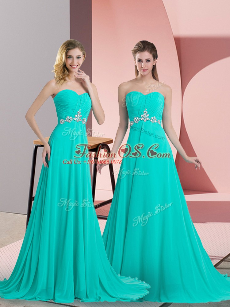 Exquisite Turquoise Empire Chiffon Sweetheart Sleeveless Beading Lace Up Homecoming Dress Brush Train