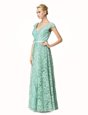 Exquisite Turquoise Lace Zipper V-neck Cap Sleeves Mother Of The Bride Dress Pleated