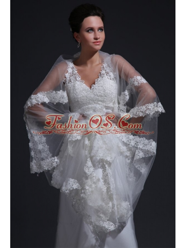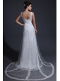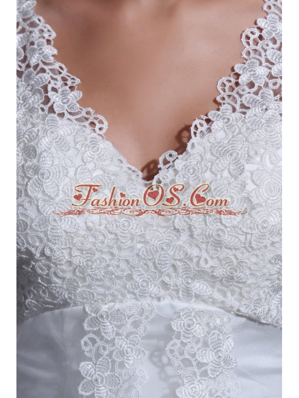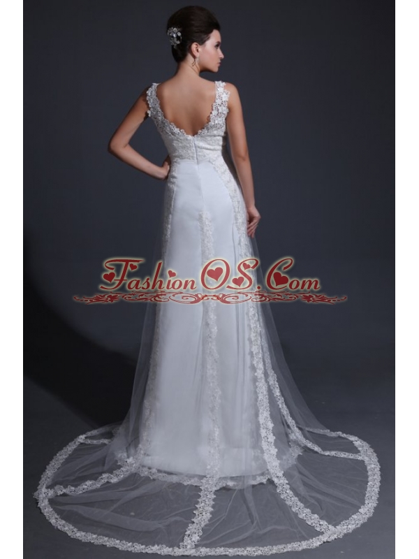 Exquisite V-neck A-line Lace Appliques Wedding Dress with Court Train