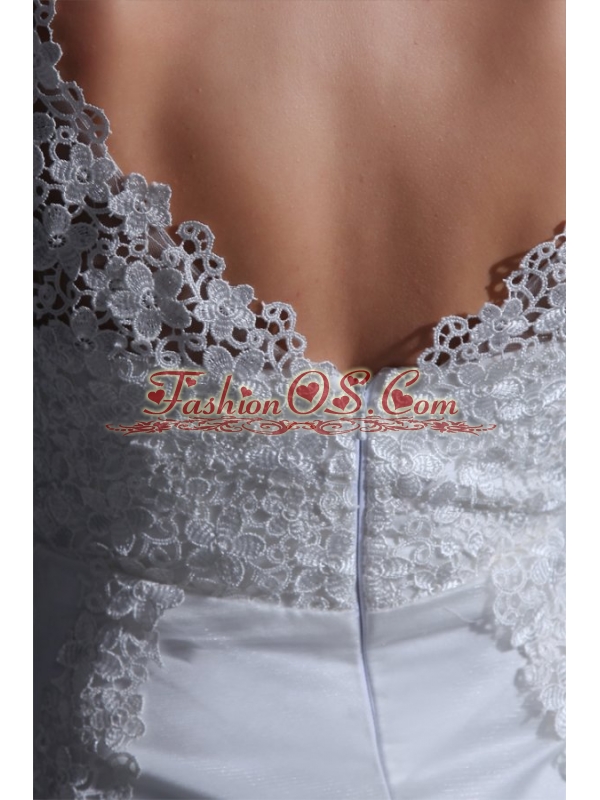 Home >  Wedding Dresses >  Perfect Wedding Dresses > Exquisite V-neck A-line Lace Appliques Wedding Dress with Court Train