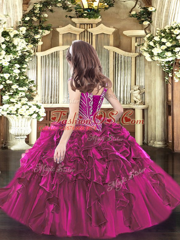 Home >  Special Occasion Dresses >  Pretty Little Girl Pageant Dresses > Exquisite V-neck Sleeveless Kids Pageant Dress Floor Length Beading and Ruffles Purple Organza