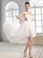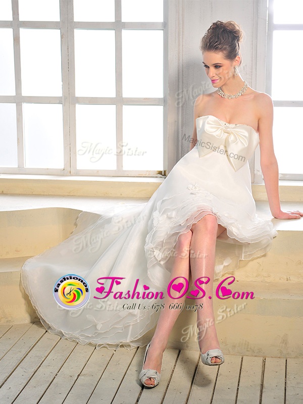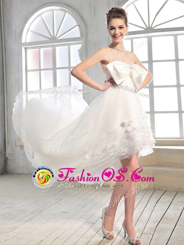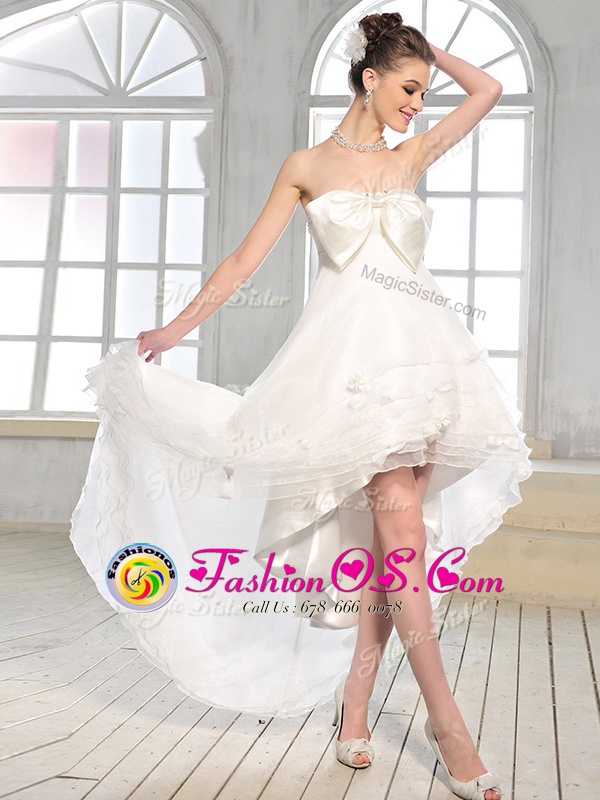 Exquisite White Zipper Wedding Dresses Bowknot Sleeveless High Low