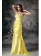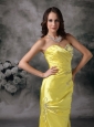 Exquisite Yellow Column Sweetheart Evening Dress  Taffeta Beading  Brush Train