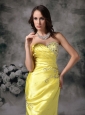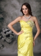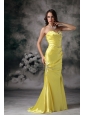 Home >  Evening Dresses > Exquisite Yellow Column Sweetheart Evening Dress Taffeta Beading Brush Train
