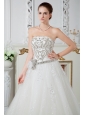 Exqusite Wedding Dress A-line Strapless Beading Court Train Tulle
