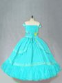 Extravagant Aqua Blue Sleeveless Floor Length Embroidery Lace Up Quinceanera Dresses