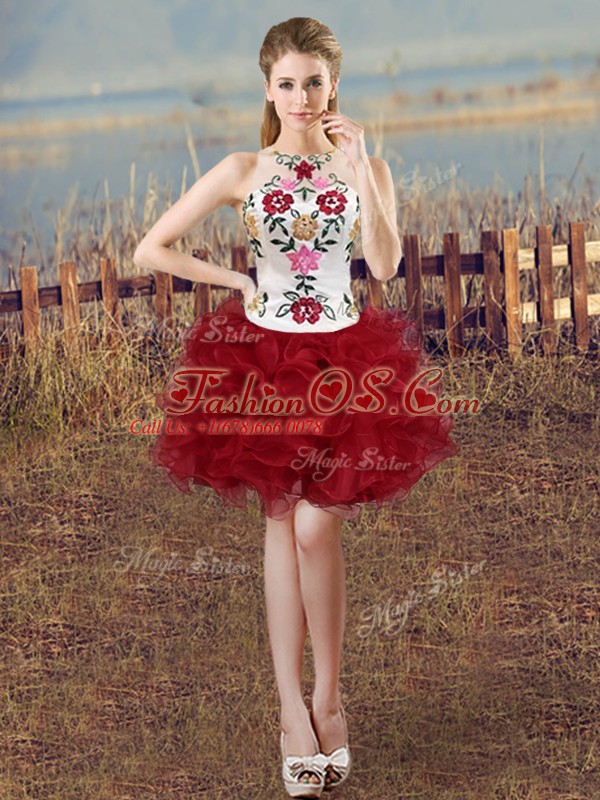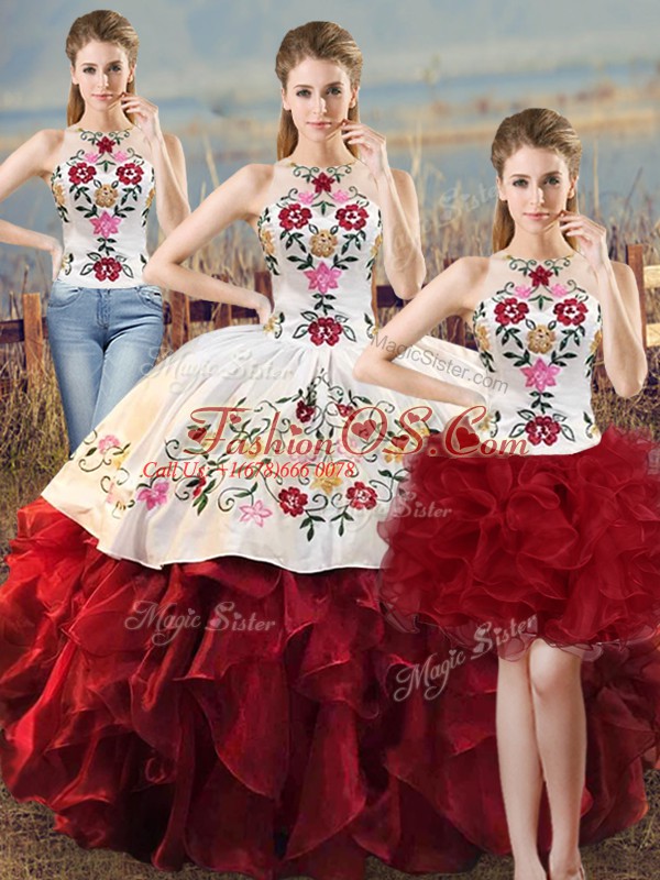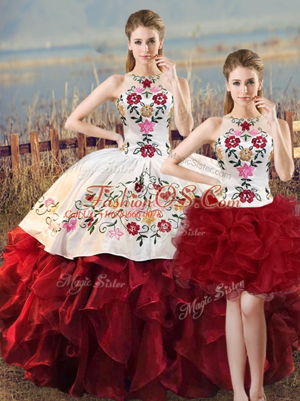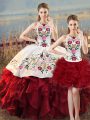 Extravagant Ball Gowns Vestidos de Quinceanera White And Red Halter Top Organza Sleeveless Floor Length Lace Up