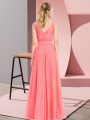Extravagant Blue Chiffon Zipper Scoop Sleeveless Floor Length Quinceanera Court Dresses Beading and Appliques