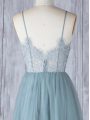 Extravagant Floor Length Grey Wedding Party Dress Spaghetti Straps Sleeveless Zipper