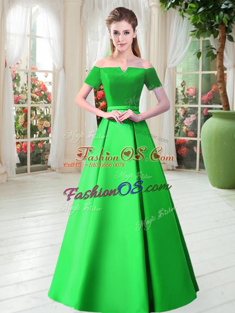 Home >  Prom Dresses >  Pretty Prom Dresses > Extravagant Green Prom Dresses Prom and Party with Belt Off The Shoulder Short Sleeves Lace Up