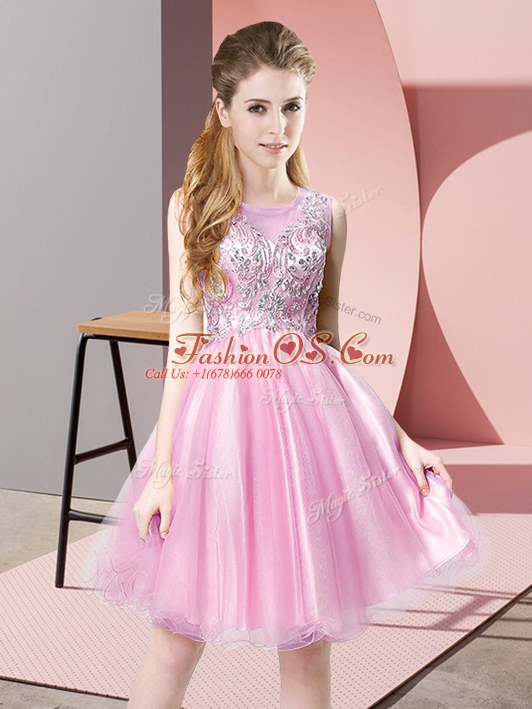 Extravagant Knee Length A-line Sleeveless Rose Pink Homecoming Dress Zipper