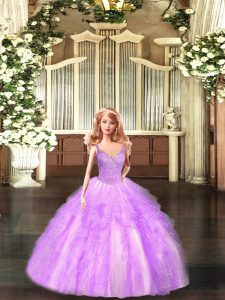 Extravagant Lilac Sleeveless Organza Lace Up Sweet 16 Quinceanera Dress for Military Ball and Sweet 16 and Quinceanera