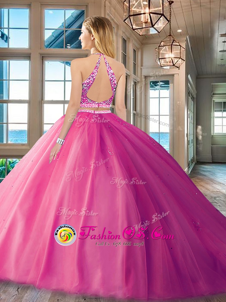 Home >  Quinceanera Dresses >  Fast Delivery Quinceanera Dresses > Extravagant Scoop Royal Blue Tulle Backless Ball Gown Prom Dress Sleeveless Floor Length Beading