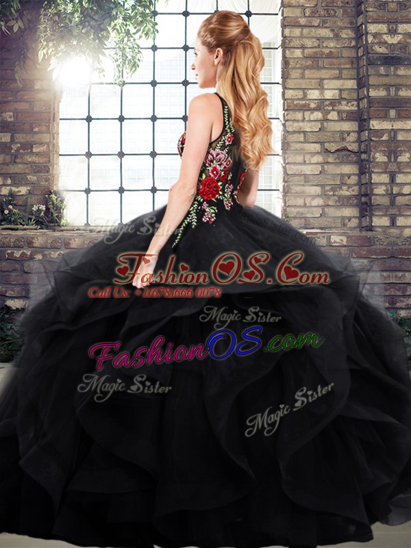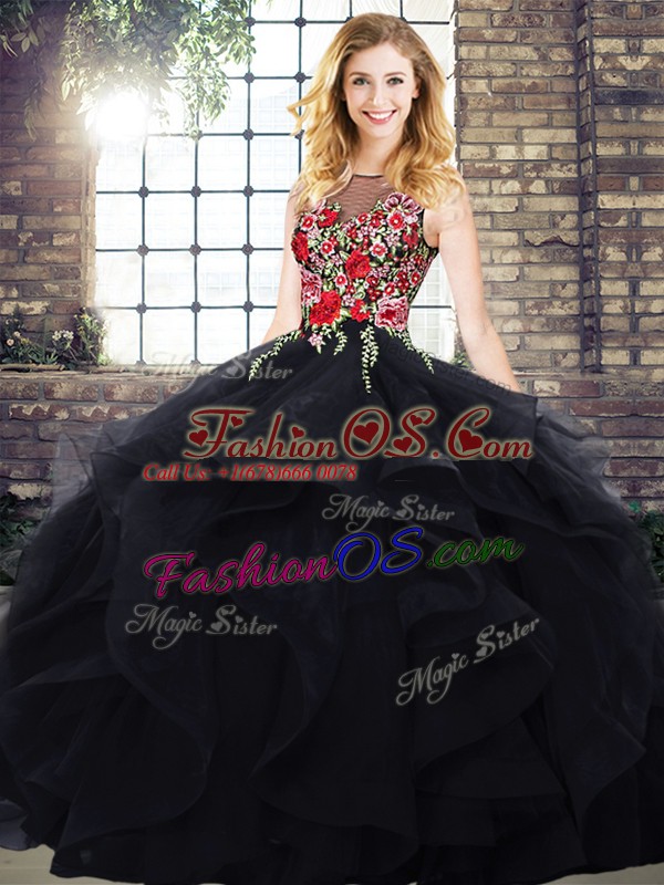 Extravagant Scoop Sleeveless Quinceanera Dress Embroidery and Ruffles Zipper
