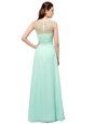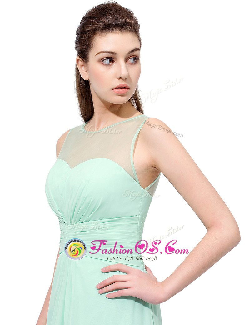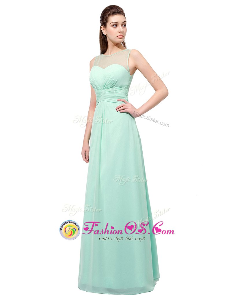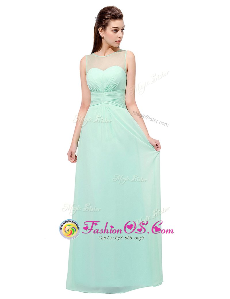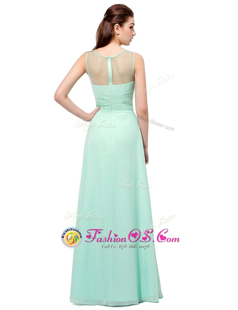 Extravagant Scoop Turquoise Sleeveless Ruching Floor Length Evening Dress