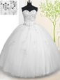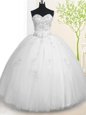Home >  Quinceanera Dresses >  Beautiful Quinceanera Dresses > Extravagant Sleeveless Floor Length Beading and Appliques Lace Up Quinceanera Gowns with White