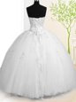 Extravagant Sleeveless Floor Length Beading and Appliques Lace Up Quinceanera Gowns with White