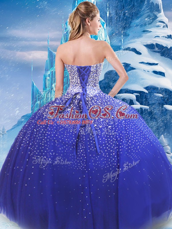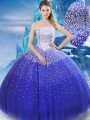 Extravagant Sleeveless Floor Length Beading Lace Up Quinceanera Dresses with Blue