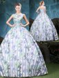 Extravagant Straps Sleeveless Floor Length Appliques and Pattern Lace Up Vestidos de Quinceanera with Multi-color