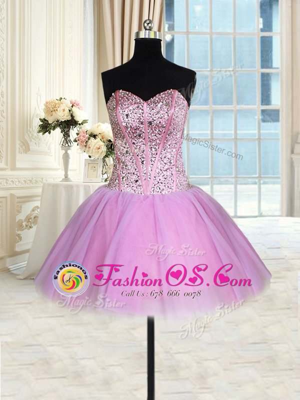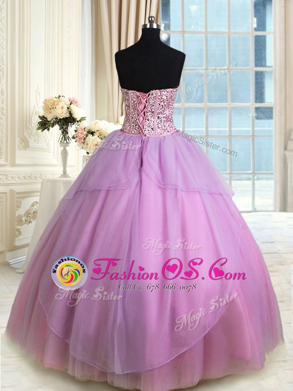 Extravagant Three Piece Lilac Lace Up Sweetheart Beading Sweet 16 Quinceanera Dress Tulle Sleeveless