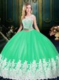 Extravagant Tulle Scoop Sleeveless Zipper Lace and Appliques Quinceanera Gown in Apple Green