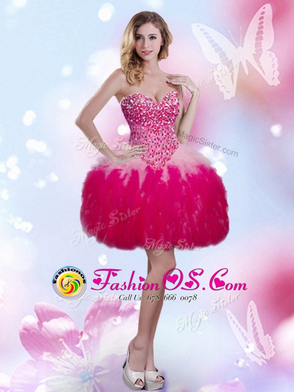 Extravagant Tulle Sleeveless Mini Length Cocktail Dresses and Beading and Ruffles
