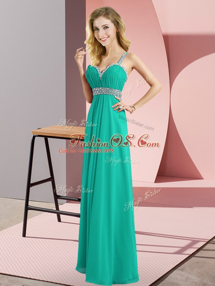 Extravagant Turquoise Empire Beading Criss Cross Chiffon Sleeveless Floor Length
