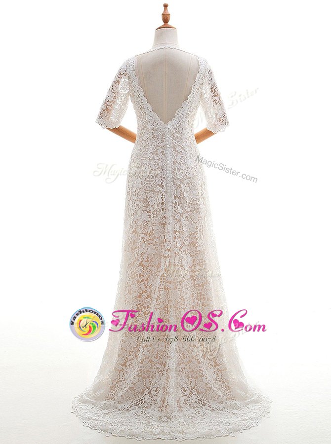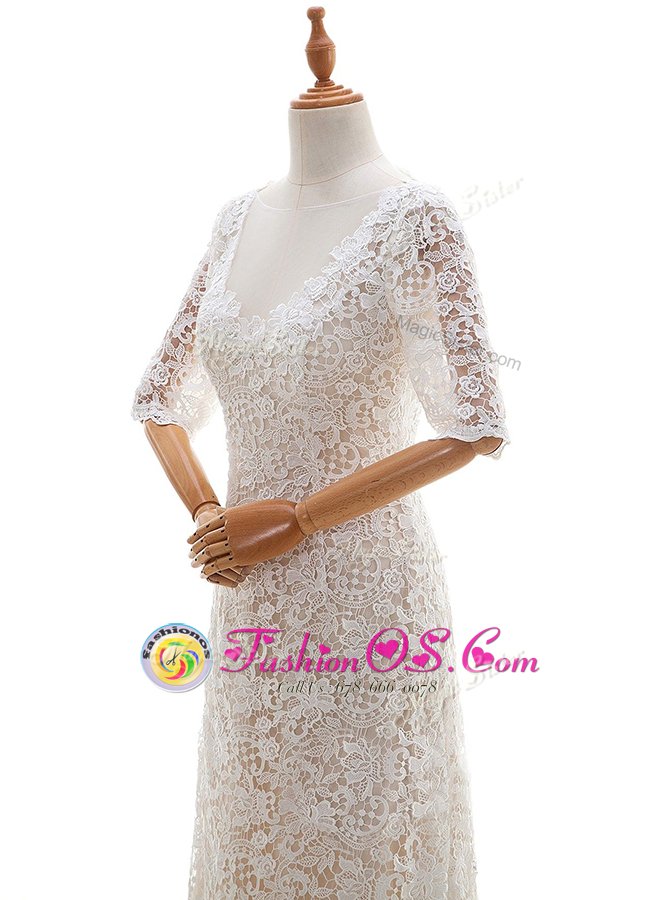 Home >  Wedding Dresses >  Perfect Wedding Dresses > Extravagant White Scoop Neckline Lace Wedding Dress Half Sleeves Clasp Handle