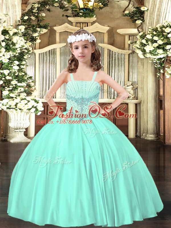 Home >  Special Occasion Dresses >  Lovely Little Girl Pageant Dresses > Eye-catching Apple Green Sleeveless Floor Length Beading Lace Up Kids Formal Wear