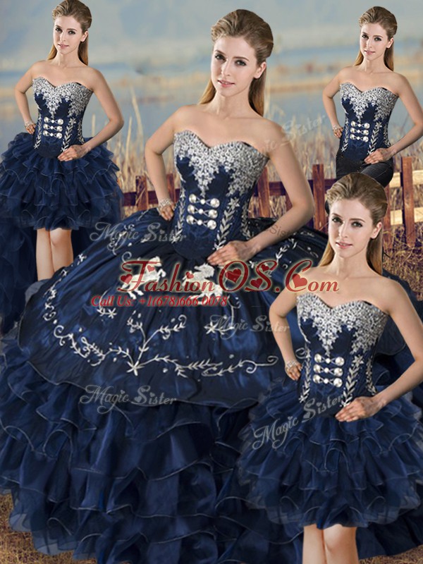 Home >  Quinceanera Dresses >  Detachable Quinceanera Skirts > Eye-catching Ball Gowns Ball Gown Prom Dress Navy Blue Sweetheart Organza Sleeveless Floor Length Lace Up
