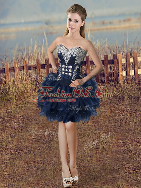 Eye-catching Ball Gowns Ball Gown Prom Dress Navy Blue Sweetheart Organza Sleeveless Floor Length Lace Up