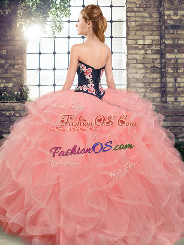 Home >  Quinceanera Dresses >  Chic Quinceanera Dresses > Eye-catching Embroidery 15 Quinceanera Dress Baby Blue Lace Up Sleeveless Sweep Train