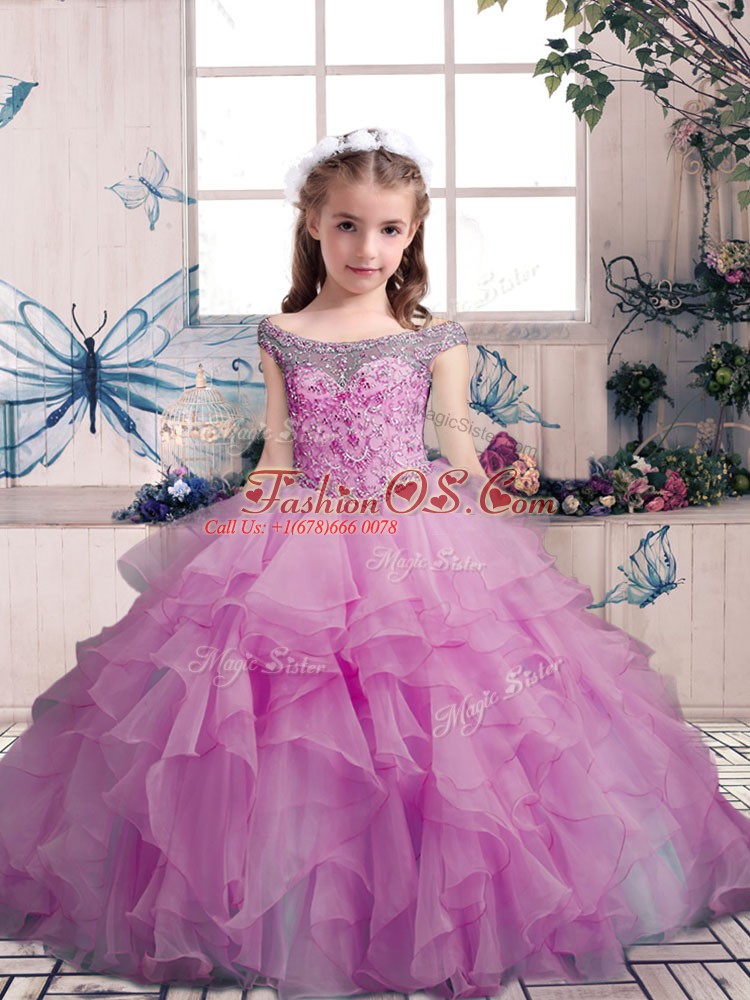 Home >  Special Occasion Dresses >  2019 Little Girl Pageant Dresses > Eye-catching Floor Length Lilac Little Girl Pageant Dress Organza Sleeveless Beading and Ruffles