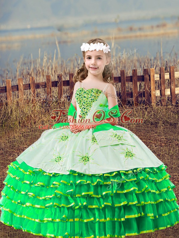 Home >  Special Occasion Dresses >  Beautiful Kids Pageant Dresses > Eye-catching Green Organza Lace Up Glitz Pageant Dress Sleeveless Floor Length Beading and Embroidery and Ruffled Layers