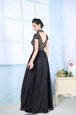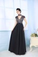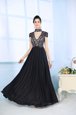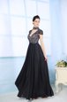 Eye-catching High-neck Short Sleeves Mother Of The Bride Dress Floor Length Beading and Lace Black Chiffon