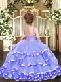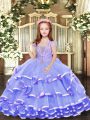Eye-catching Lavender Kids Formal Wear For with Beading and Ruffled Layers Straps Sleeveless Lace Up