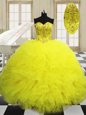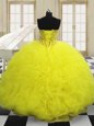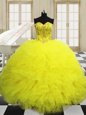Eye-catching Light Yellow Lace Up Sweetheart Beading and Ruffles Sweet 16 Dress Tulle Sleeveless