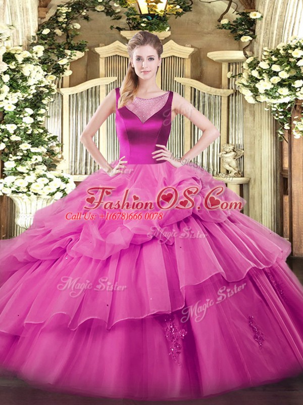 Eye-catching Lilac Quinceanera Gowns Sweet 16 and Quinceanera with Beading and Appliques Scoop Sleeveless Side Zipper